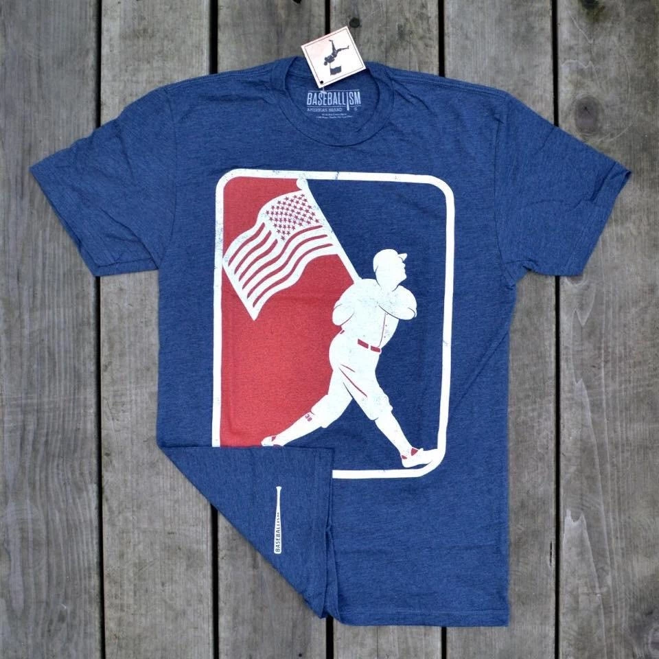 – Vintage Baseballism bat screened on back right of the garment