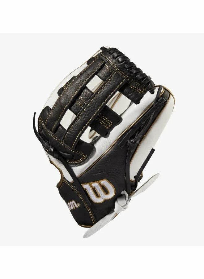 Designed with durable White and Black Full Grain leather and a sturdy Dual Post Web, this 12” pattern offers the reach you need to make every play no matter where you’re stationed on the infield.