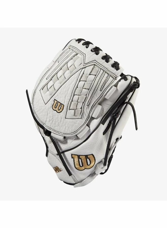 White Full Grain leather with a 12.5” reach allows you to hunt fly balls and line drives in the outfield, and the closed Victory Weave Web keeps your pitch grips concealed when you’re dealing.
