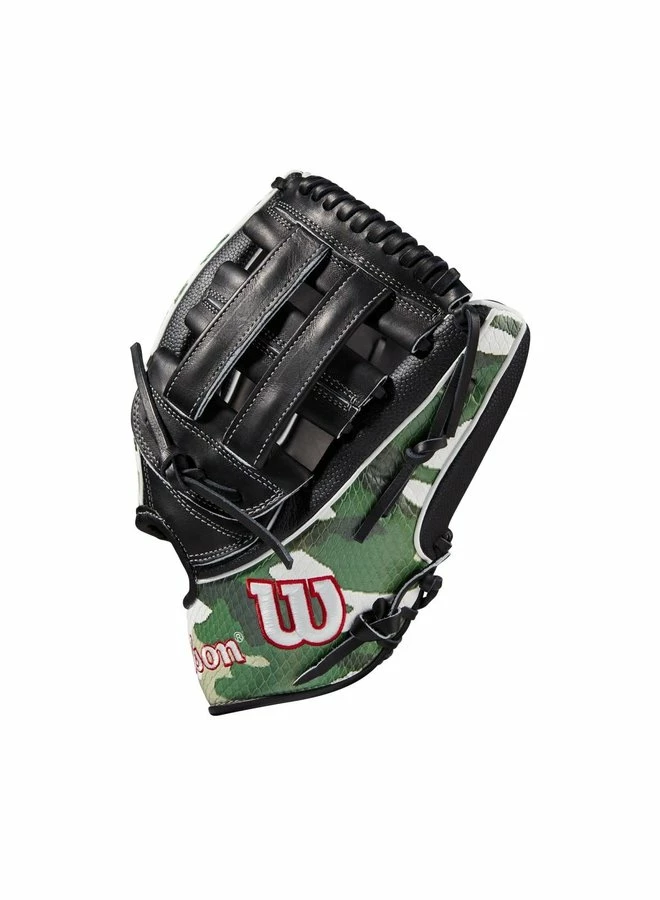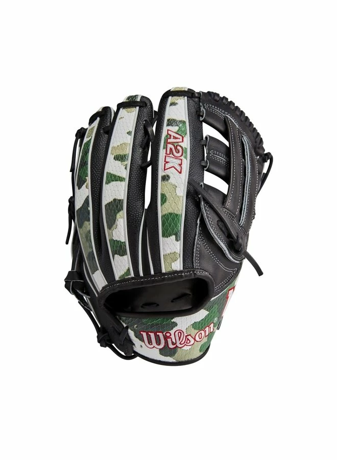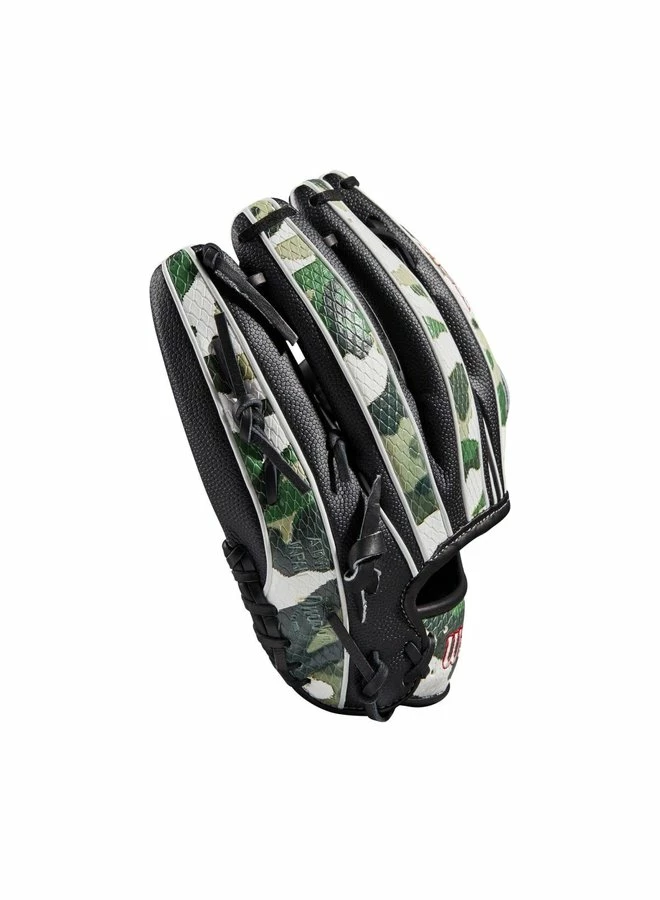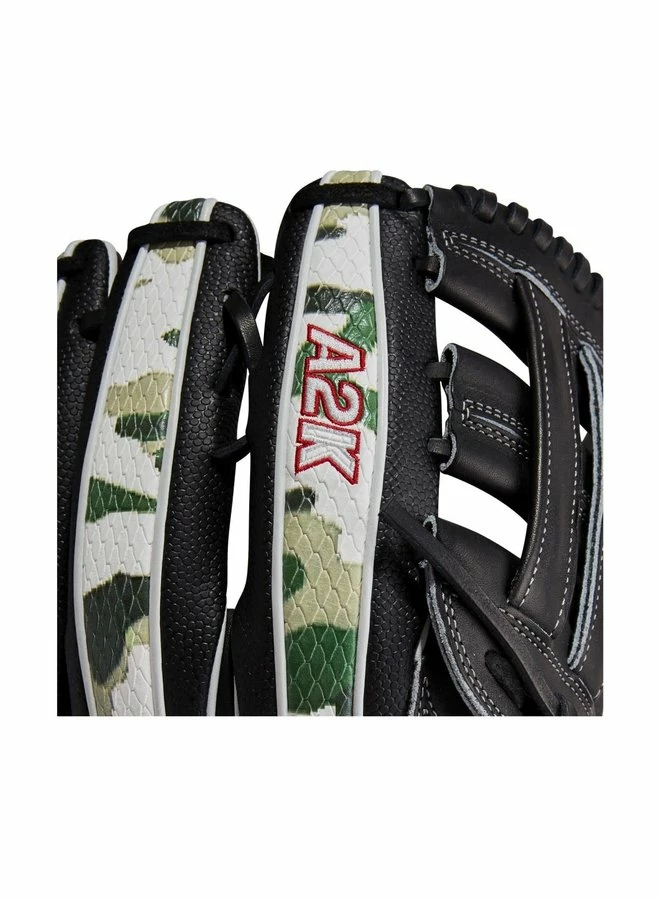 With Camouflage SuperSnakeSkin™ and Black SuperSkin™ finger panels, this 12” Baseball Glove delivers lightweight performance on the infield. Rooted in iconic patterns like the 1721 and David Wright’s classic DW5, the A2K 1795SS offers a deep pocket,