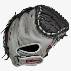 A smaller hand opening and Velcro wrist strap helps create a secure fit for catchers, and the all-leather construction offers a sturdy and lightweight feel with Grey and Black Top Grain leather. Engineered for youth players, the A500 catcher’s mitt boasts an adjustable wrist closure for easy in-game adjustments and steady control of the glove.
